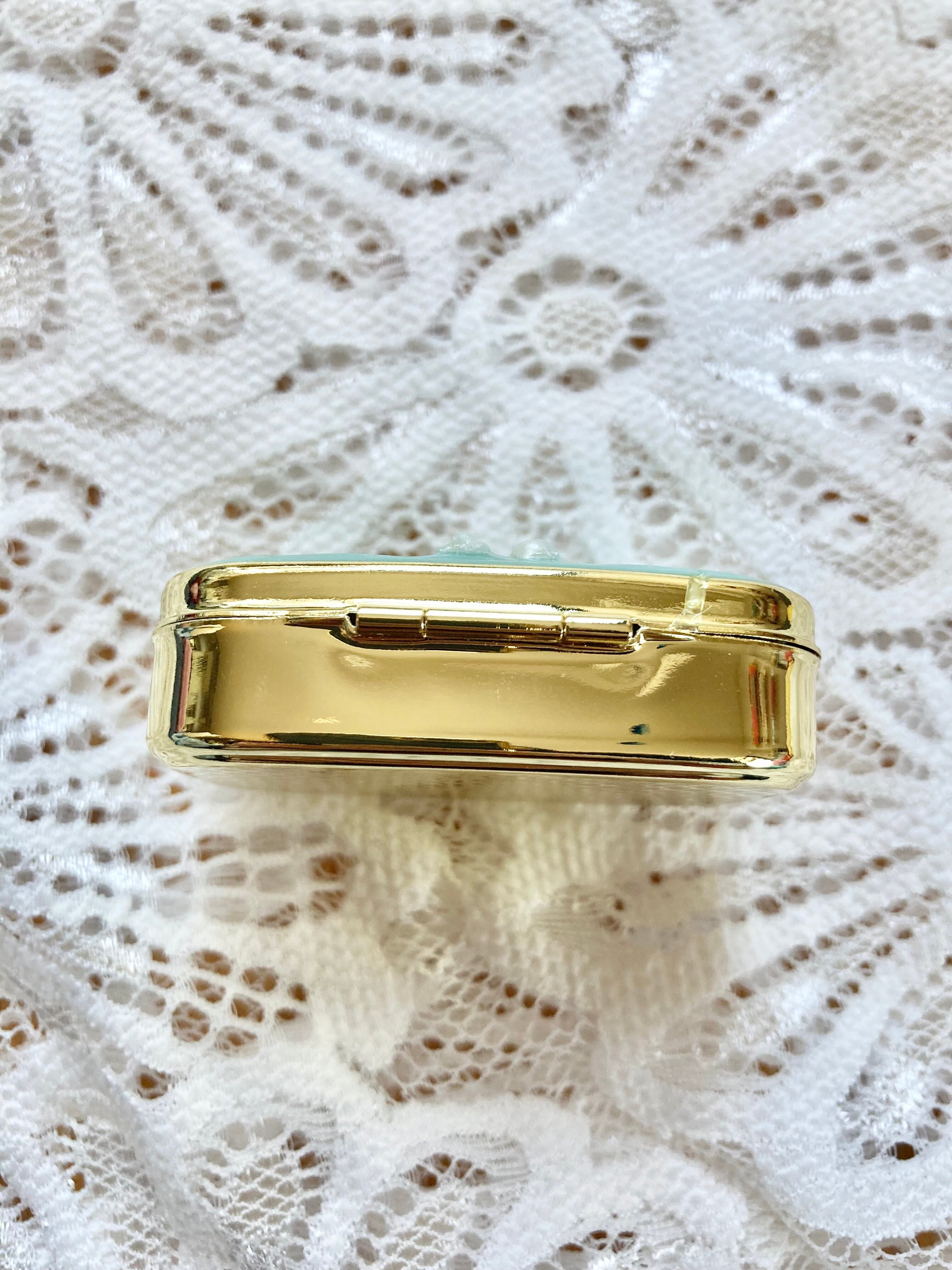 内側に鏡がついているので、小さなアクセサリーの持ち歩きやつけ外しに便利です。常備薬を入れていただくのにもお勧めです。