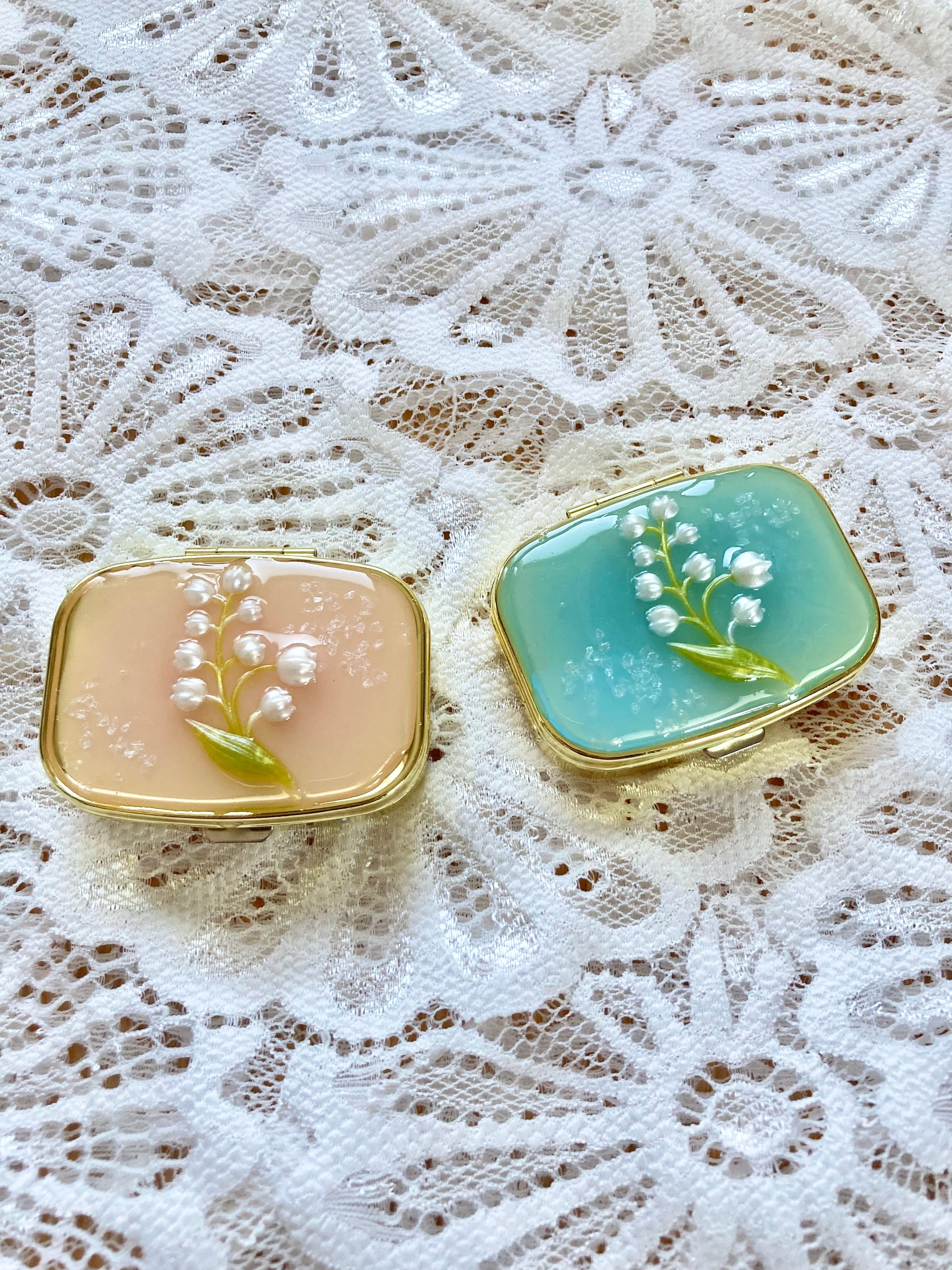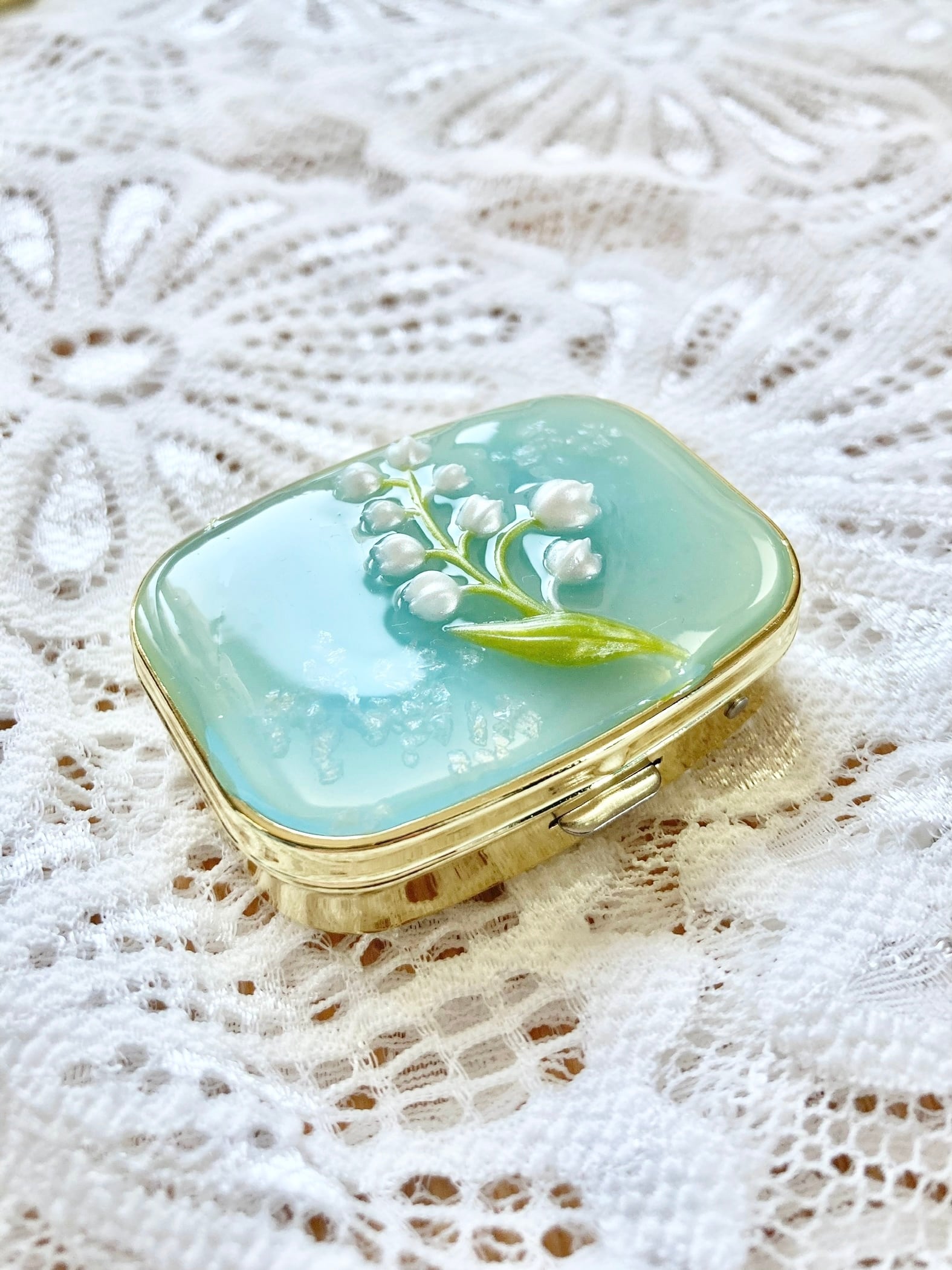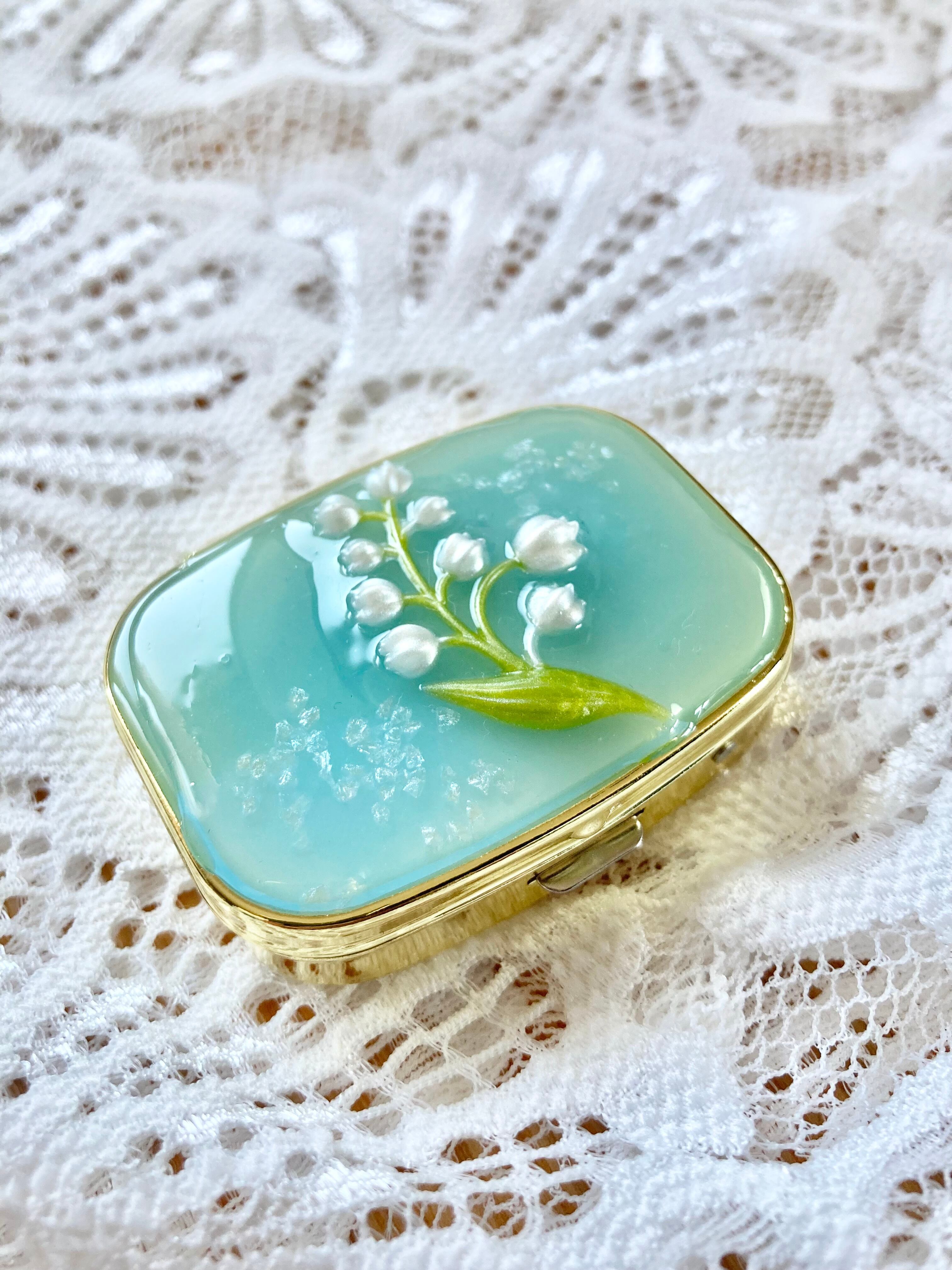 「幸福の再来」が花言葉のすずらんを、ミルキーな色でピルボックスに閉じ込めました。小さな幸せを、カバンの中に持ち歩いてみませんか?