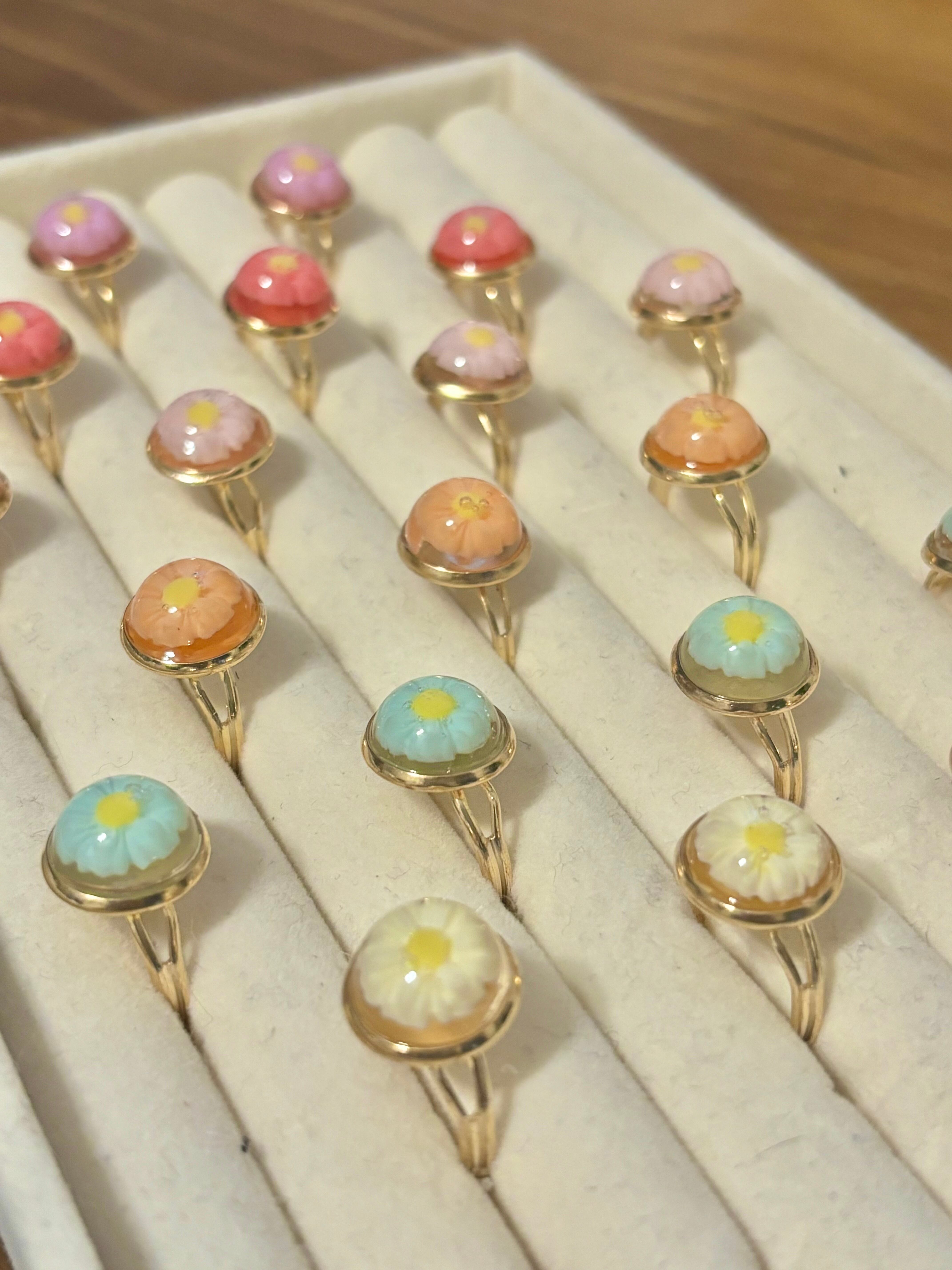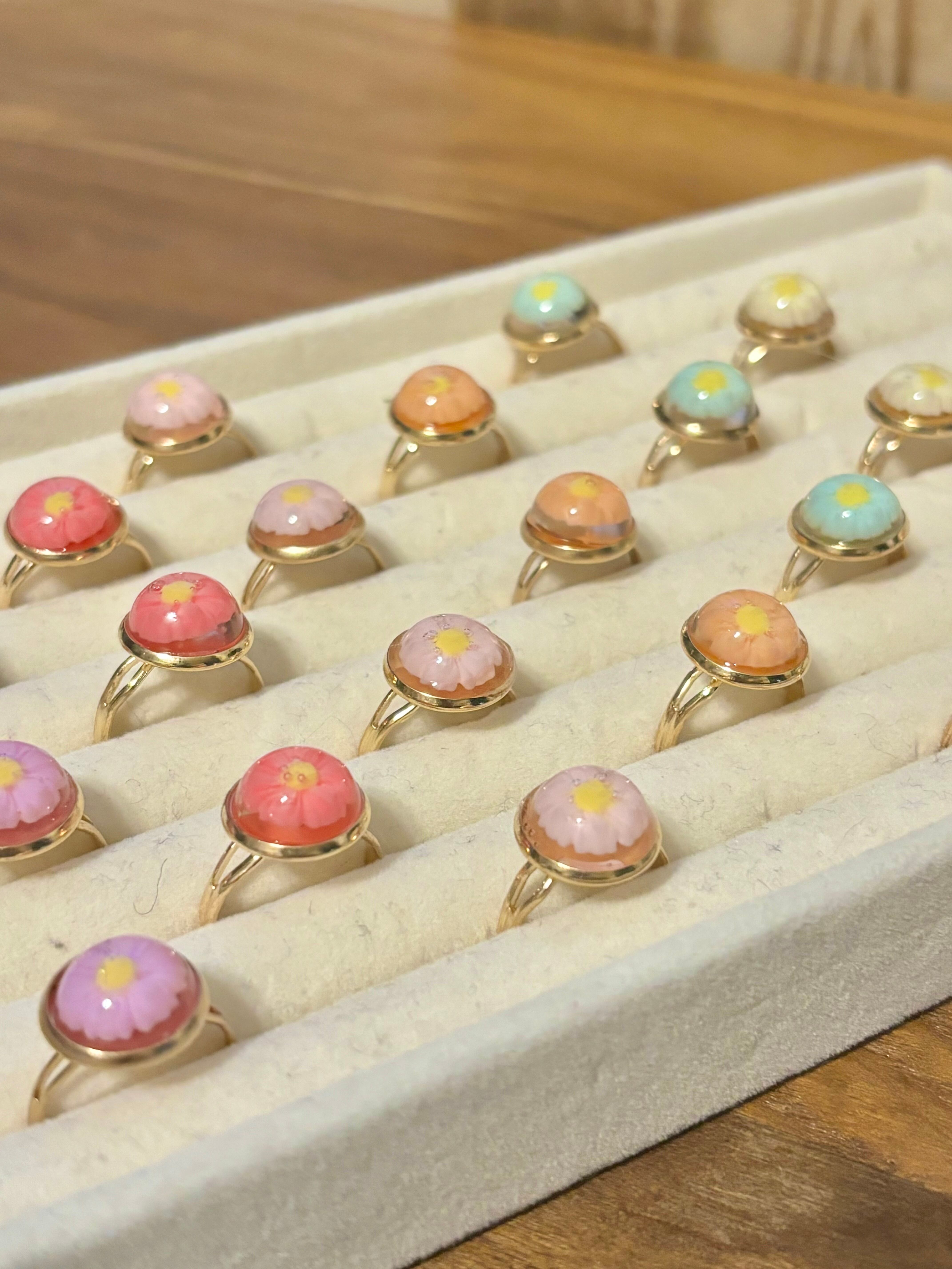 「月石さん」に並ぶ常夜の国の名産品「花石さん」をひとつひとつ丁寧に指輪に仕立てました。